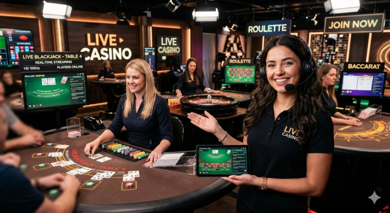 Join tables with real dealers for games like roulette, blackjack, and baccarat. The streams run in HD and the experience feels close to being at an actual table.